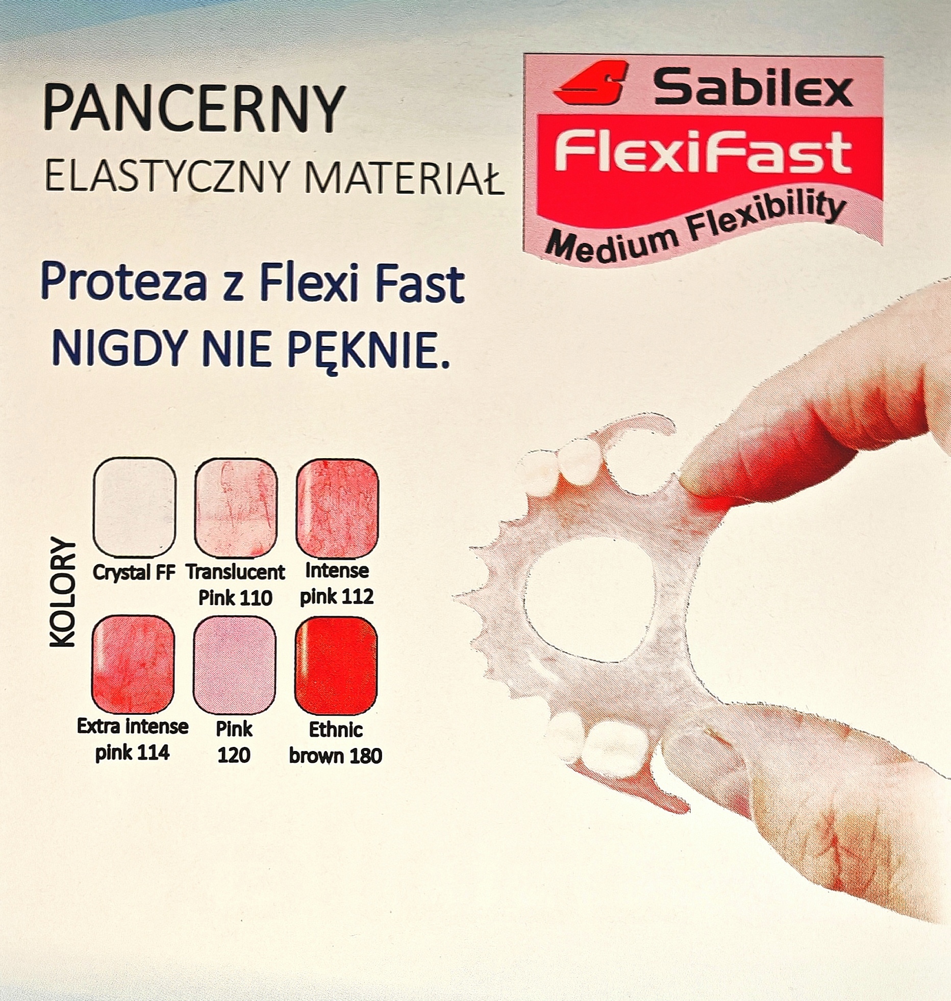 Trwałość i bezpieczeństwo: Materiał jest niezniszczalny, wolny od monomerów resztkowych oraz nie uczula. Protezy wykonane z Premium Flex zachowują estetyczny wygląd przez długi czas.